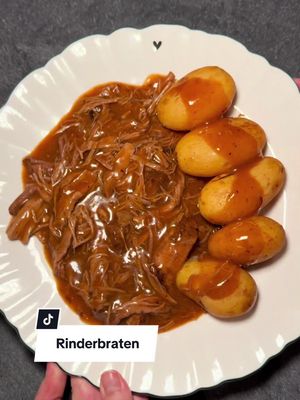 Geschmorter Rinderbraten mit Kartoffeln und brauner Soße