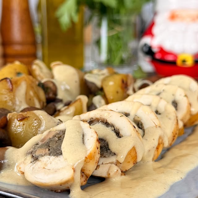 Ballotine de Poulet, Farce Forestière et Sauce Foie Gras